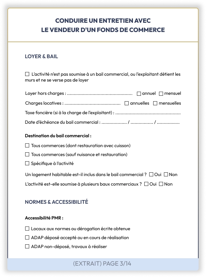 Vous avez rendez-vous avec le vendeur d’un fonds de commerce pour découvrir son affaire.